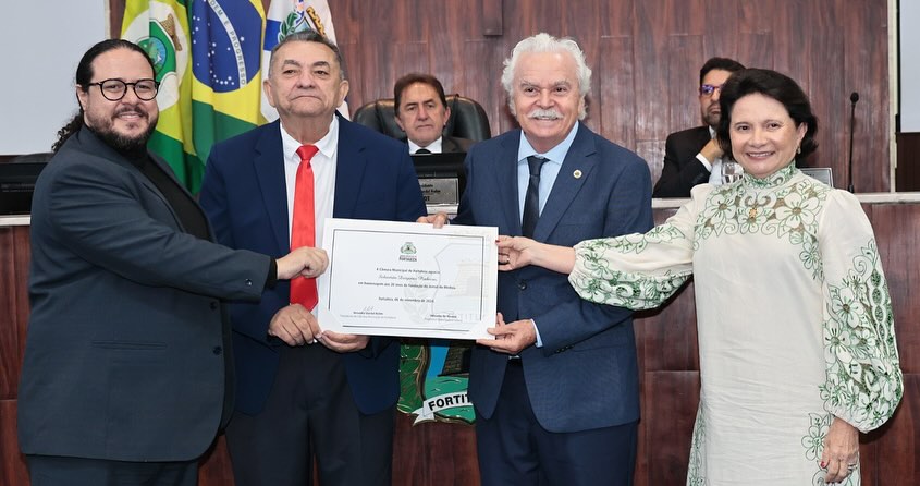 Na Solenidade em que homenageamos os 20 anos do Jornal do Médico, a mesa foi composta pelo representante da Instituição, Argollo de Menezes, estiveram ainda, vereador de Fortaleza Adail Júnior; o desembargador Everardo Lucena; o presidente a Academia Cearense de Medicina, Henrique Leal; a diretora do Conselho Regional de Medicina, Regina Lúcia Portela e o presidente Nacional da Sociedade Brasileira de Médicos Escritores e Coordenador de Cultura e Artes da Unichristus, Arruda Bastos.