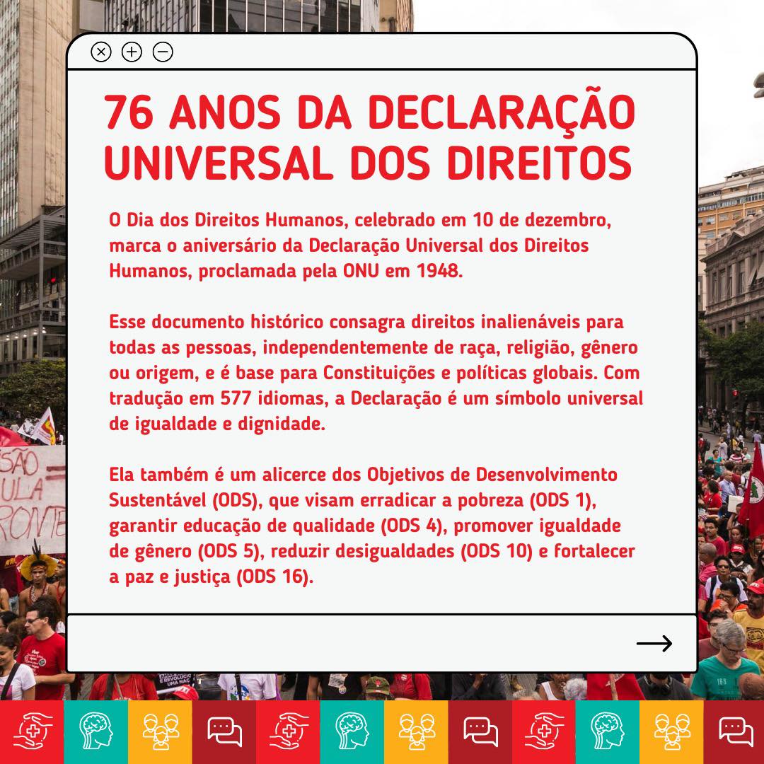 Esse marco histórico inspira Constituições e políticas globais e está no coração dos Objetivos de Desenvolvimento Sustentável, essenciais para construir um mundo mais justo e inclusivo. Juntos, seguimos na luta por um futuro onde todos os direitos sejam garantidos! ⚖️💪